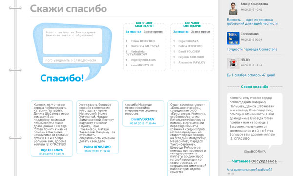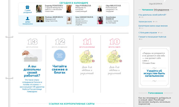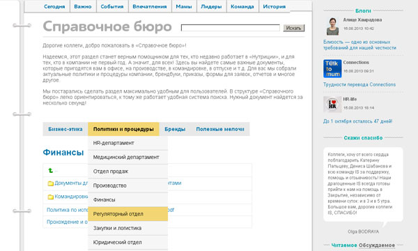 Портал является важным связующим информационным звеном между коллегами, структурными подразделениями и руководством. Географическая отдаленность филиалов компании не влияет на возможность получать актуальную информацию, оперативно решать вопросы и общаться
